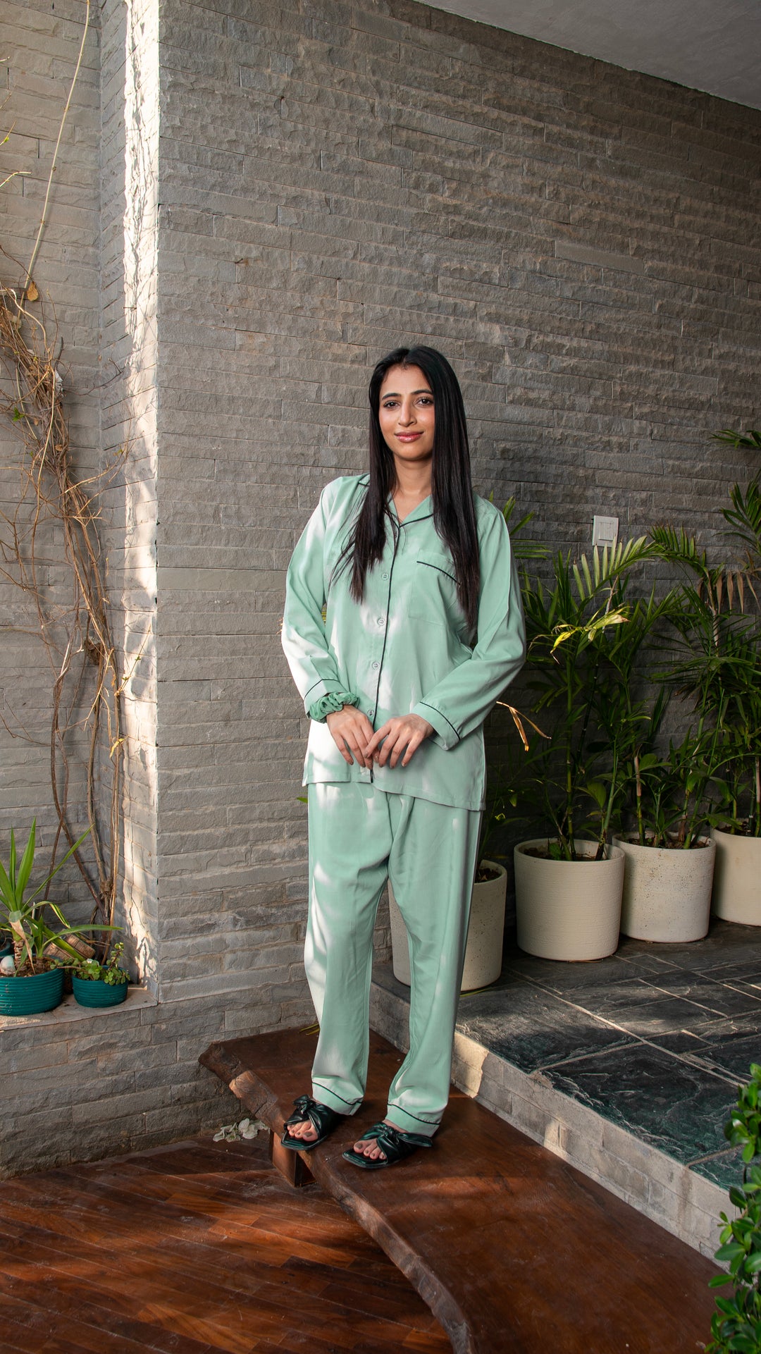 Pastel Green Linen Solid PJ Set